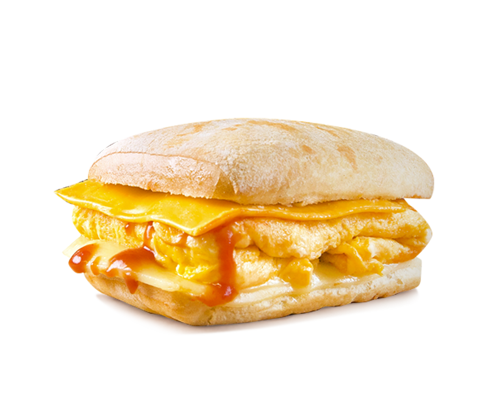 A hearty breakfast on-the-go. This sandwich features soft scrambled eggs and melted cheese between warm, toasted bread — simple, satisfying, and packed with flavor.